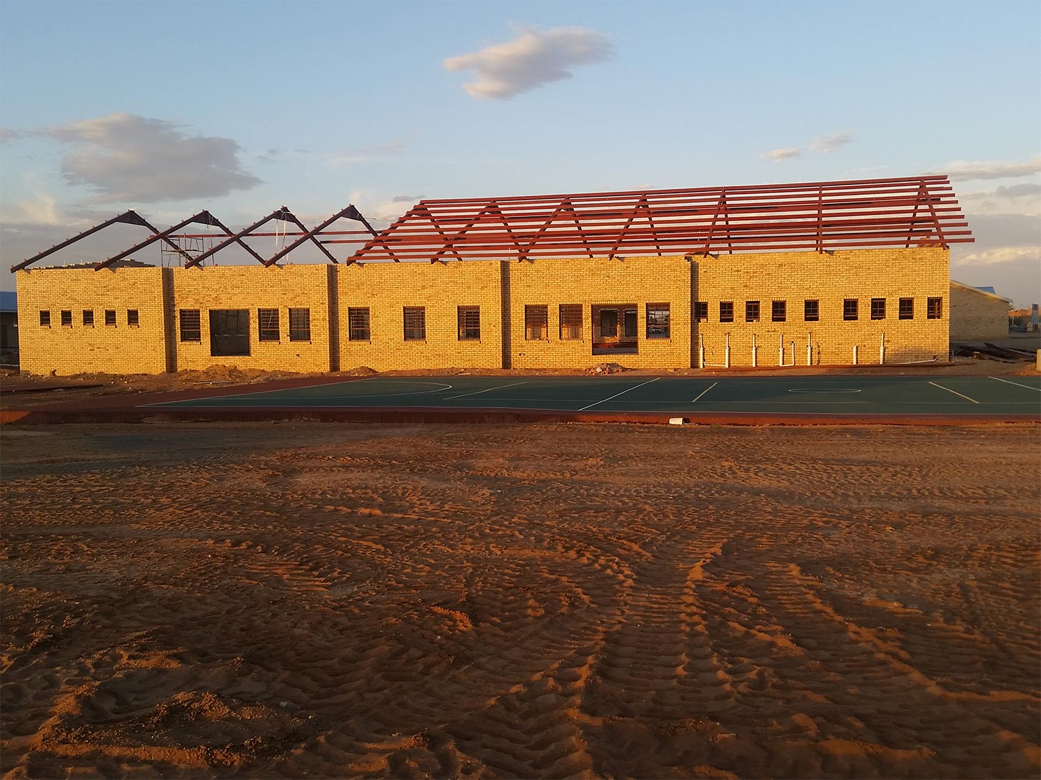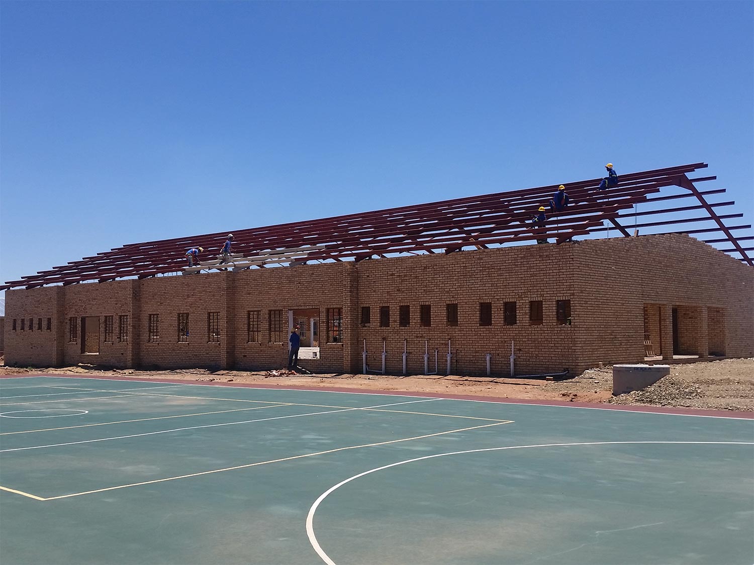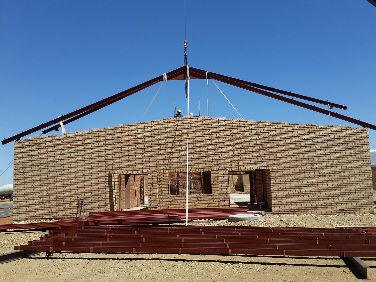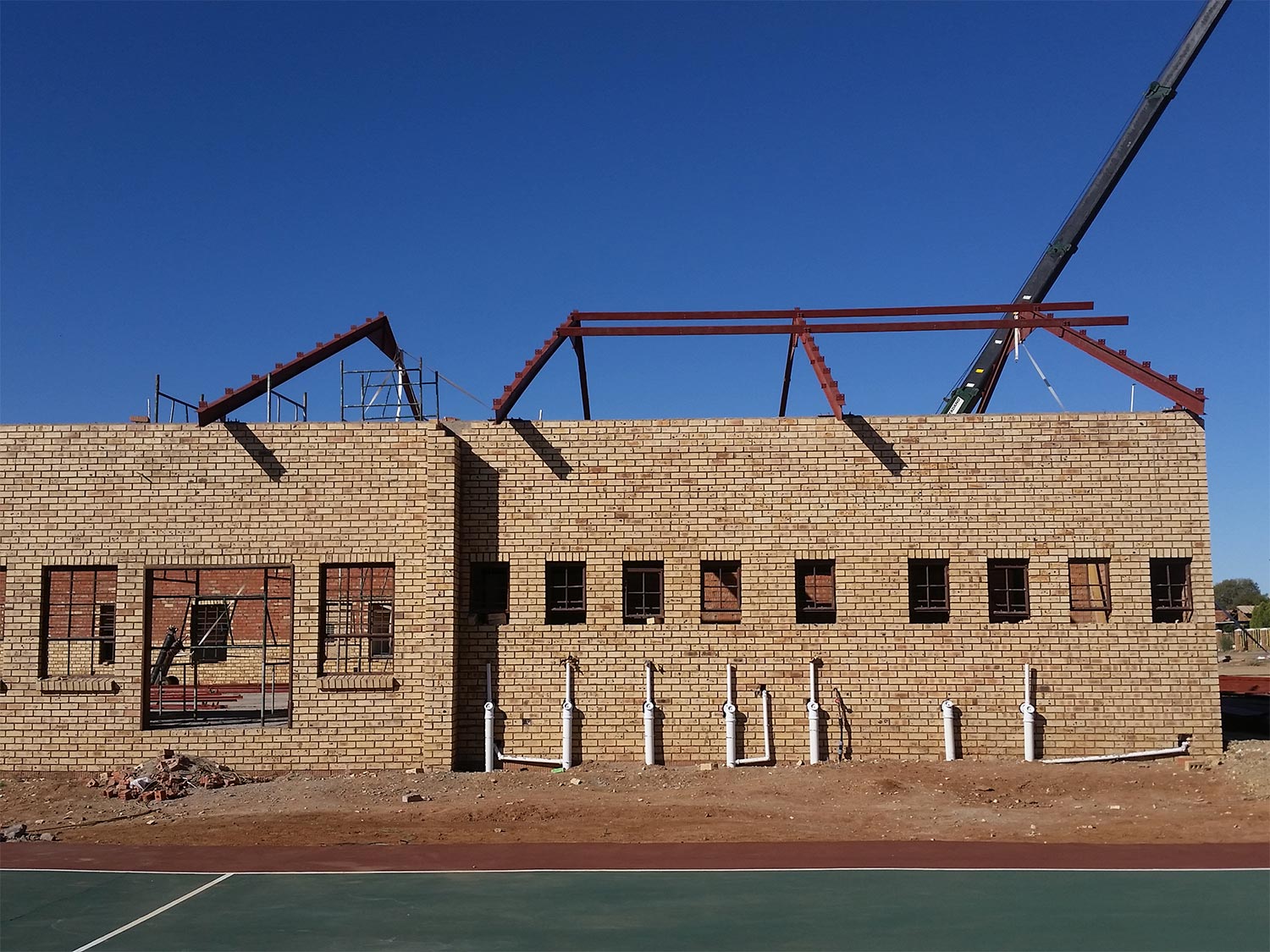 Structural steel roof structure of school hall – 15 tonnes | Erection of steel roof trusses with crane | Erection of steel roof trusses and purlins | Finished roof structure of school hall